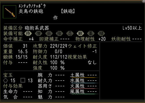 炎鳥シリーズは価値30のため、神鳴の御刀油が使えない。