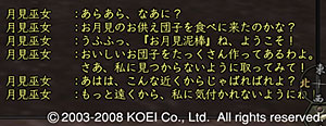 巫女に見つからないようにお団子を盗むことができたら食べていい~という風習らしく、盗もうとするけど・・・
