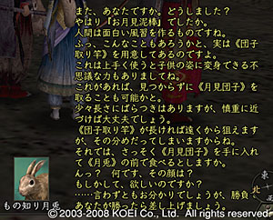 ちなみに持ち点をすべてスると、月兎から月の宝石というのをもらい、それをもの知り月兎に渡して再び100点得るという感じ。