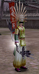 頭:豪華な金冠 服:高級布衣 武器:鳳凰弓 立物:馬りん 旗:喧嘩上等