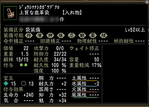 なんだかふと思い立ったので、祭りでゲットした雫をぶち込んで雅楽の知力魅力袋を作成。