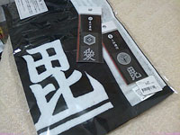 上杉家家紋(裏になって見えてないけど)と毘沙門天の毘の字が入ったタオルと、上杉謙信・直江兼続の転写式シール。